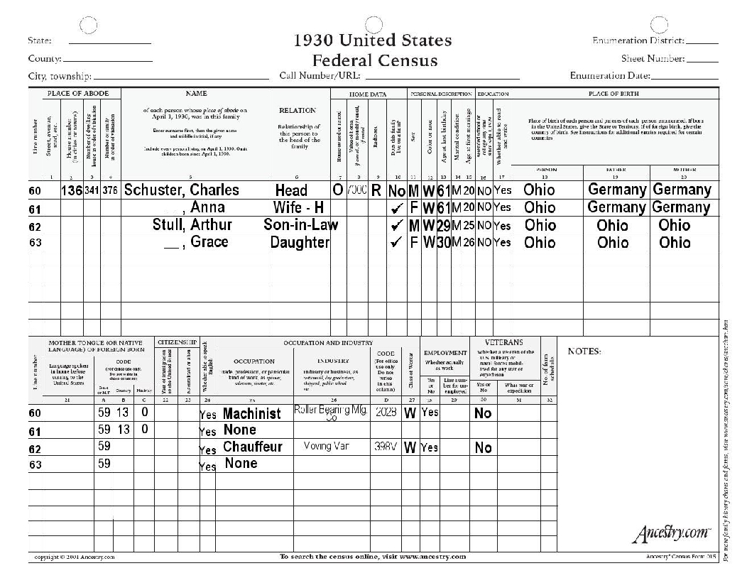 - Schuster, Charles, 1930 Census submitted by Diana Gosnell